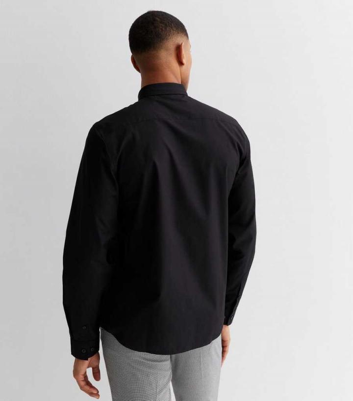 Mens Black Poplin Long Sleeve Regular Fit Shirt New Look