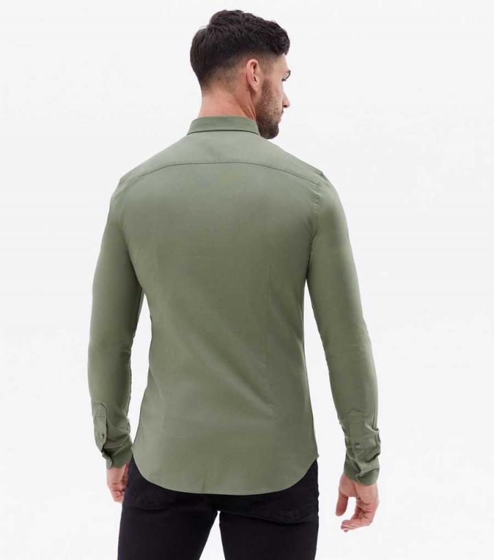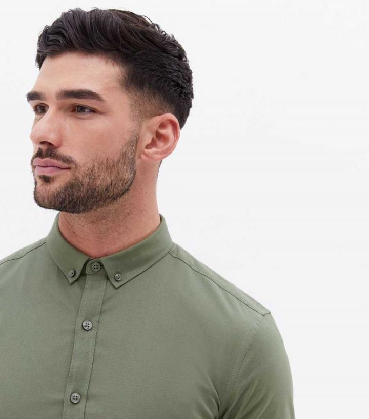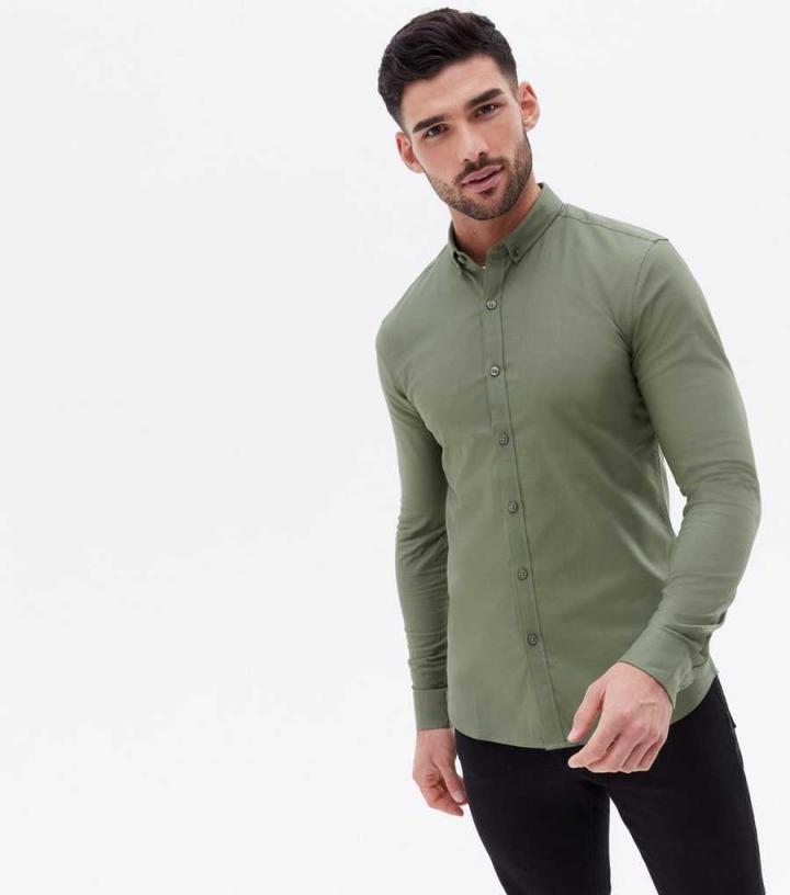 Shirts | New Look Mens Khaki Muscle Fit Long Sleeve Oxford Shirt