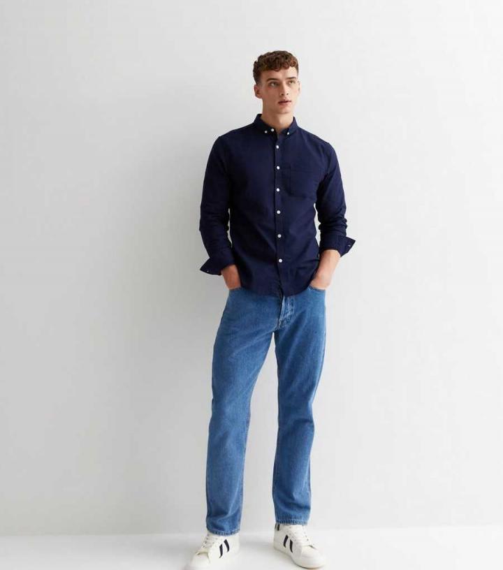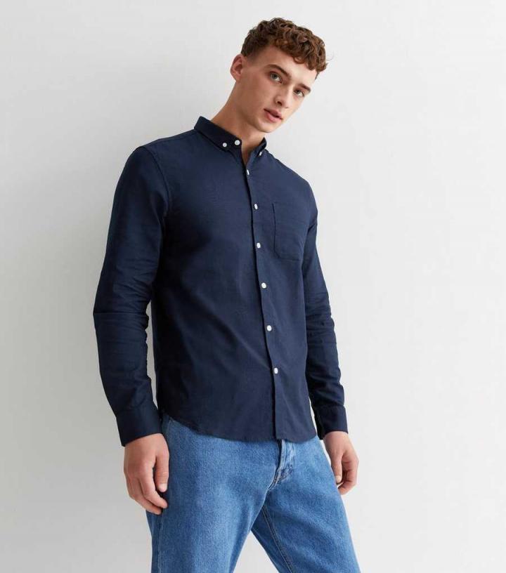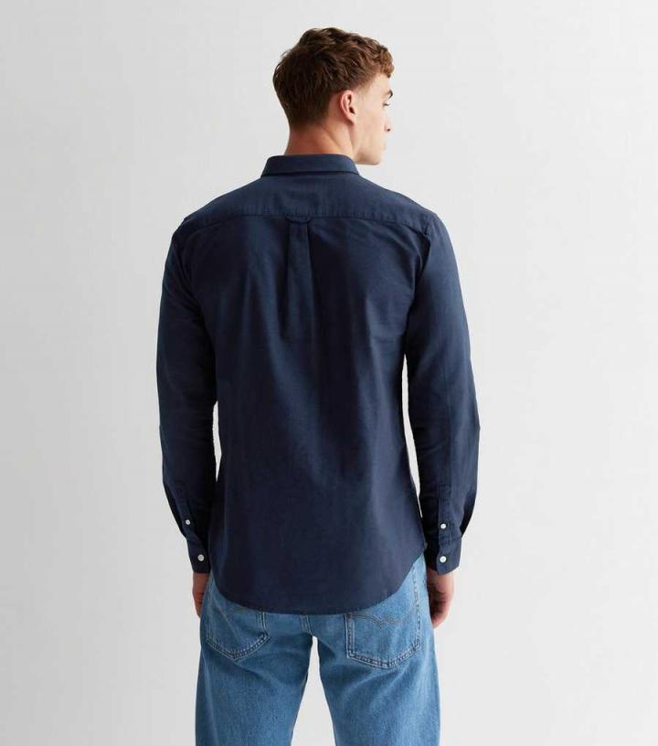 Mens Navy Cotton Long Sleeve Oxford Shirt New Look…