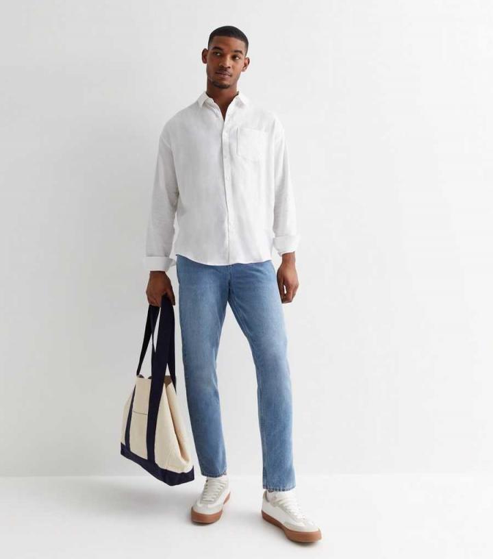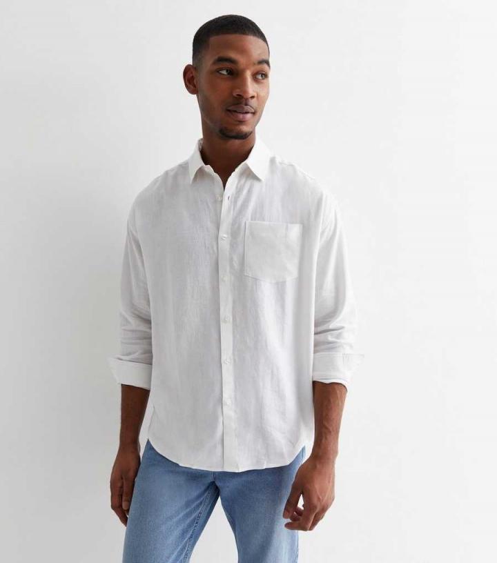 Shirts | New Look Mens White Linen Blend Long Sleeve Shirt
