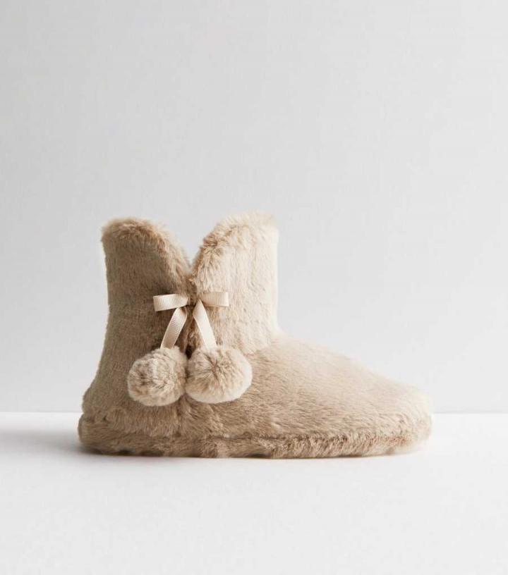 Girls Light Brown Faux Fur Slipper Boots New Look…
