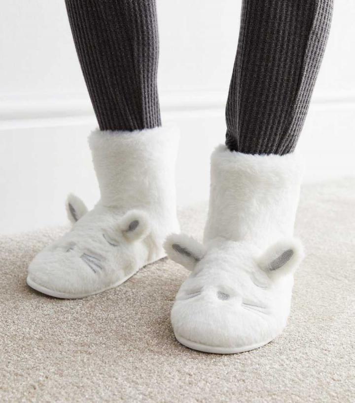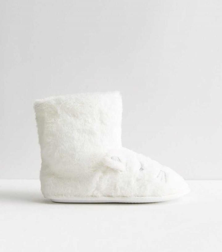 Girls White Faux Fur Bunny Slipper Boots New Look…
