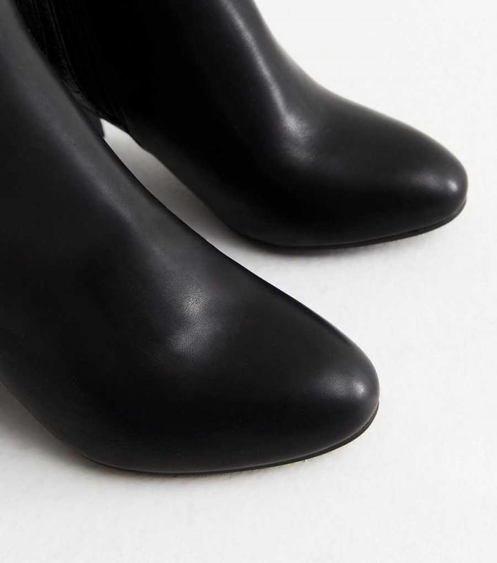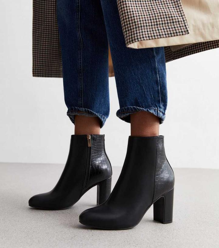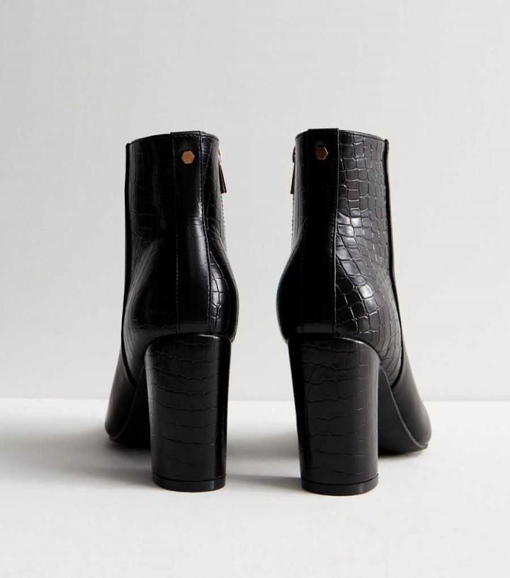 – Leather-look and faux croc finish- Almond toe- Zip-side fastening- Flat sole- Block heel- Heel height: 3.5" / 8.5cm