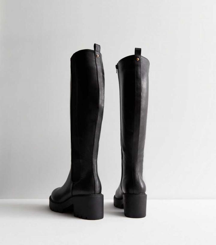 An autumn/winter staple, these black knee high boots are designed in a chic leather-look fabric.