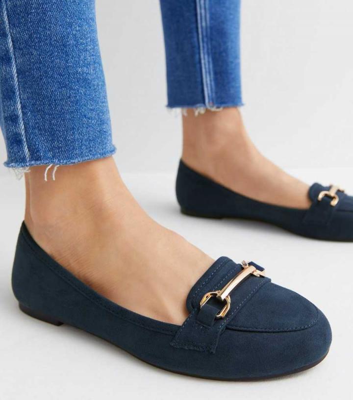 Comfort meets sophistication with these navy suedette loafers. Wear them with tights now, and bare legs when the temperature rises.