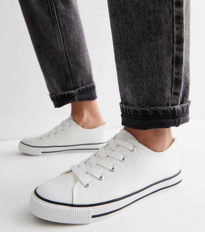 Shoes & Boots | New Look Womens|Girls White Canvas Lace Up Trainers