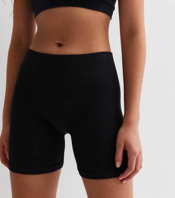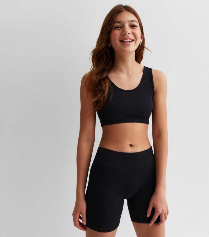 GirlsBlack Ribbed Cycling Shorts New Look…