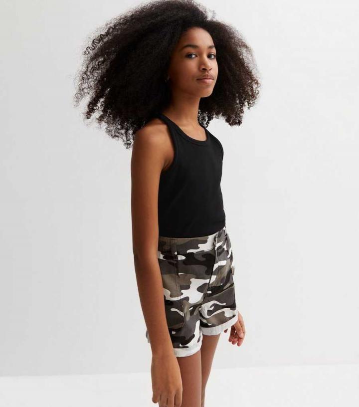 GirlsLight Grey Camo Cargo Shorts New Look…