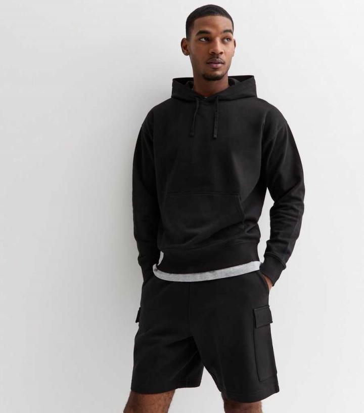 Mens Black Jersey Cargo Shorts New Look…
