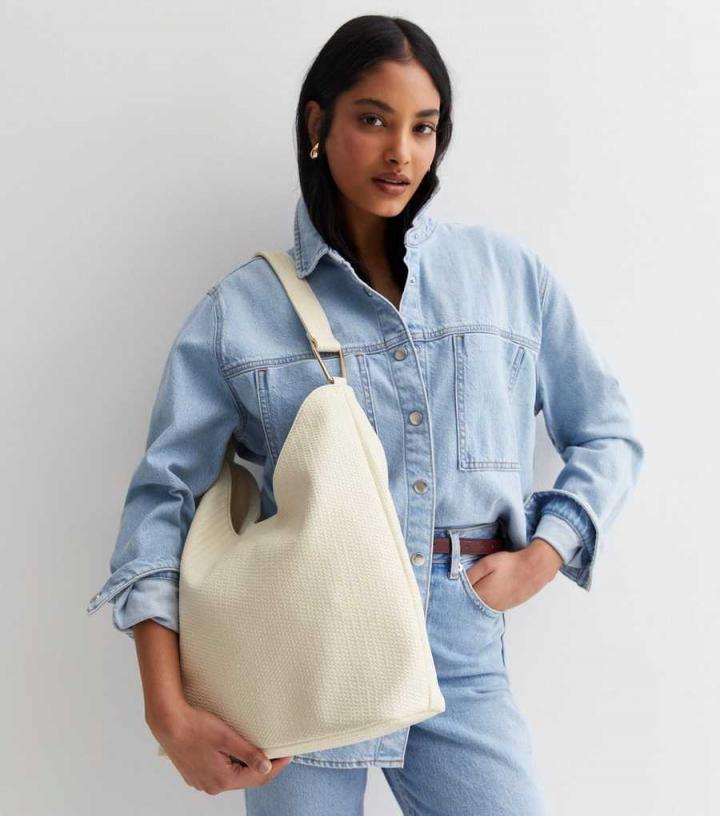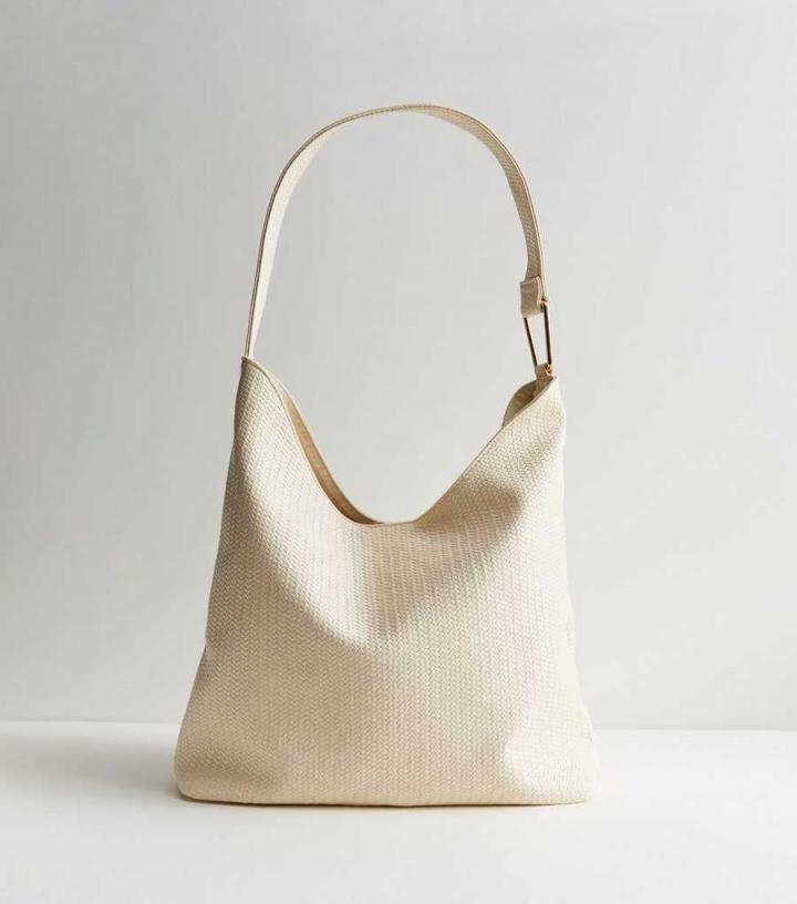 A textured woven finish gives this cream shoulder bag a stylish upgrade. Roomy enough for work or the weekend, it’ll be your n…