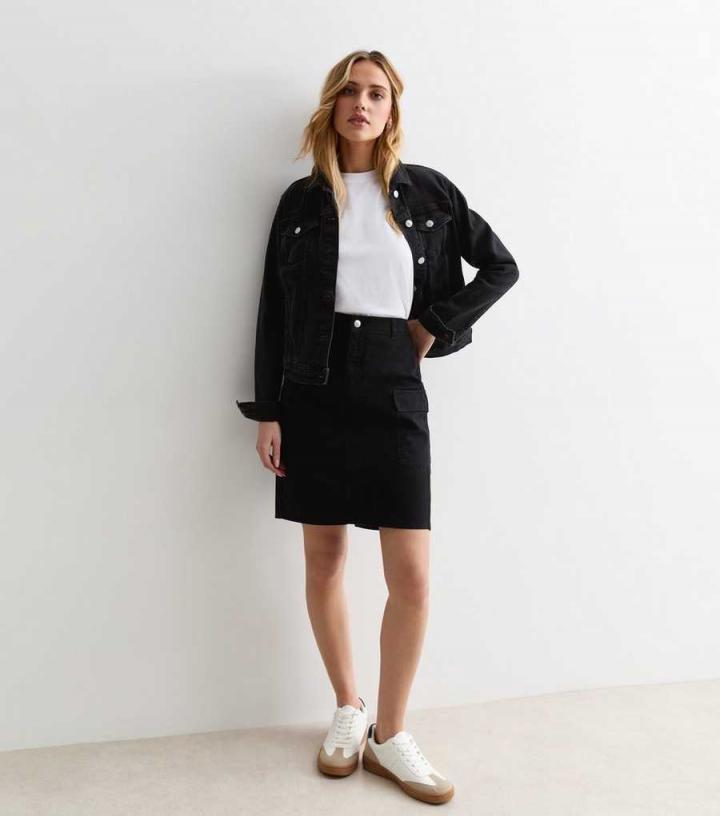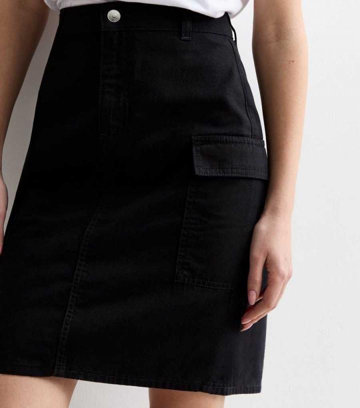 Skirts | New Look Womens Black Denim High Waist Knee Length Cargo Skirt