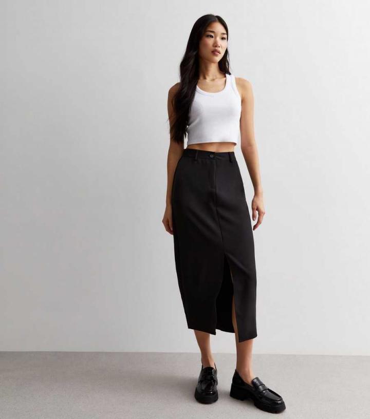 Skirts | New Look Womens Black Split Front Midi Skirt