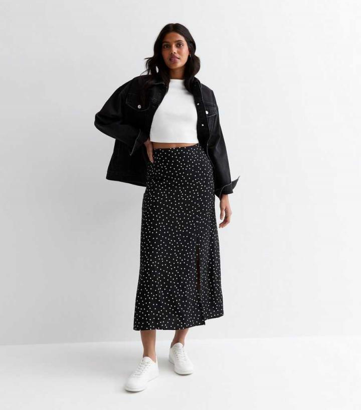 Skirts | New Look Womens Black Spot Split Hem Midi Skirt
