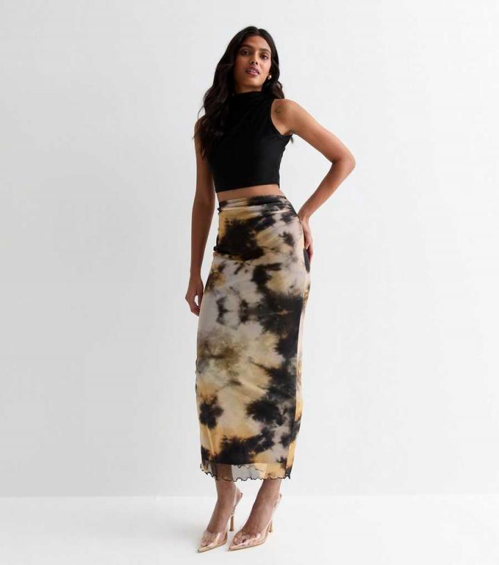 Skirts | New Look Womens Black Tie Dye Mesh Midi Skirt