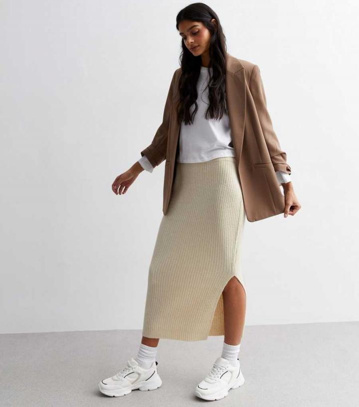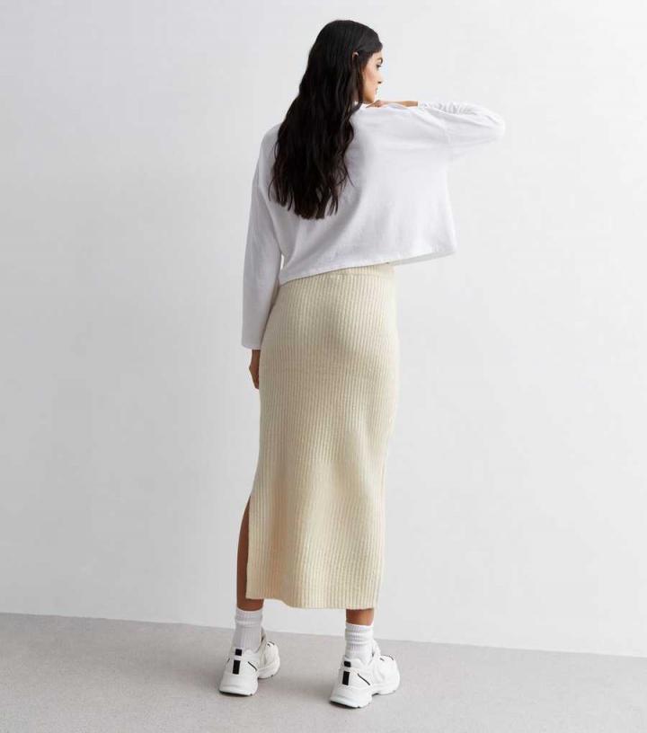 Skirts | New Look Womens Cream Ribbed Knit Midi Skirt
