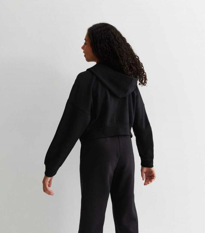 GirlsBlack Zip Through Cropped Hoodie New Look