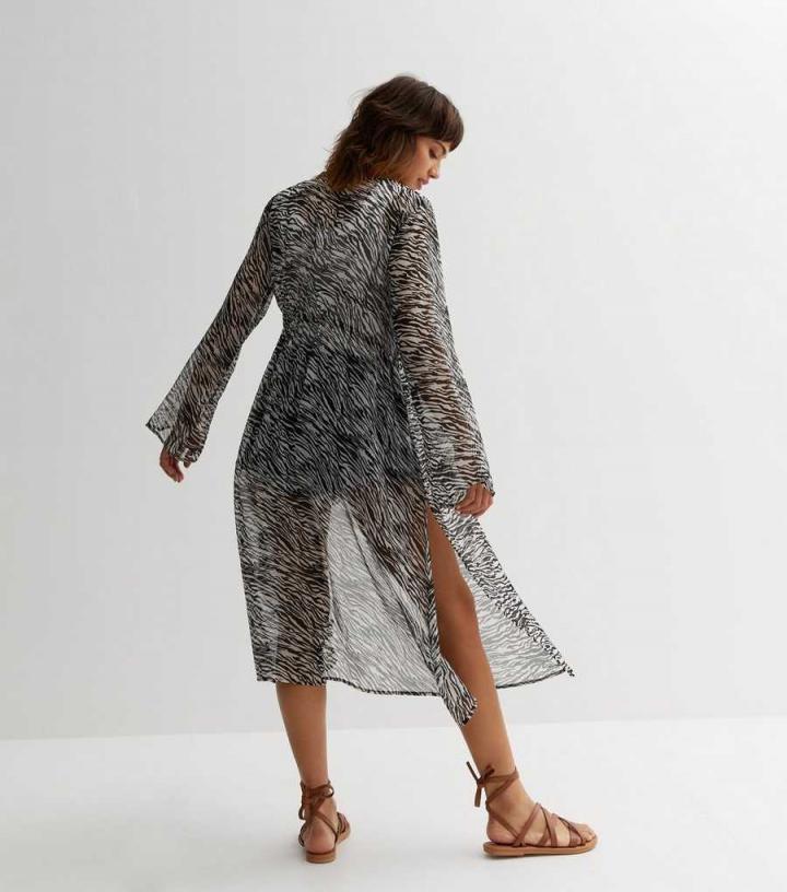 – Animal print- V neckline- Long sleeves- Tie waist- Maxi length- Soft chiffon fabric- Regular fit- Model is 5’8"/173cm and wears UK 10/EU 38/US 6