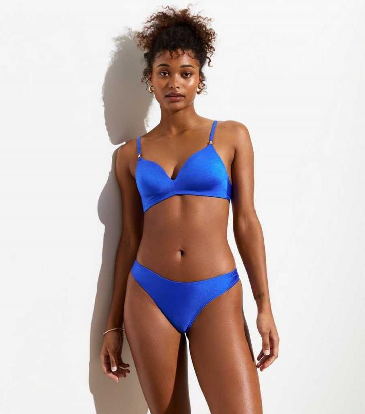 Moulded cups and adjustable shoulder straps make this blue bikini top a comfy yet stylish poolside pick. Complete the set with the matching bikini bottoms.