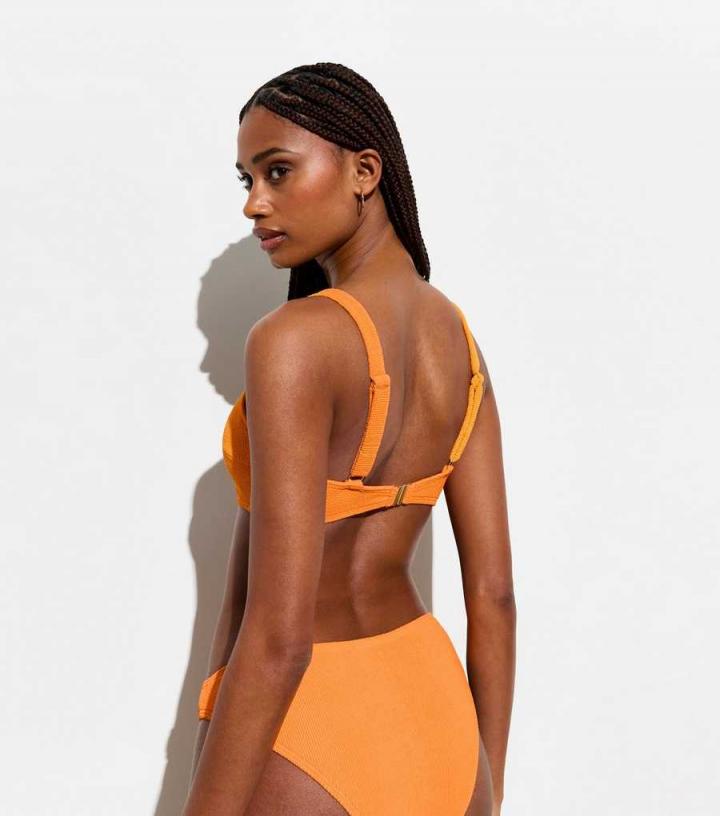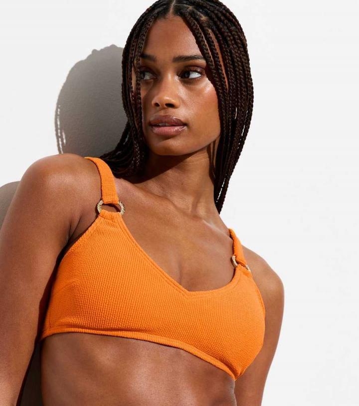 – Matching items available- Bright orange- V neckline- Adjustable straps- Soft lightly padded cups- Gold-tone hardware- Ring detail- Clasp back fastening