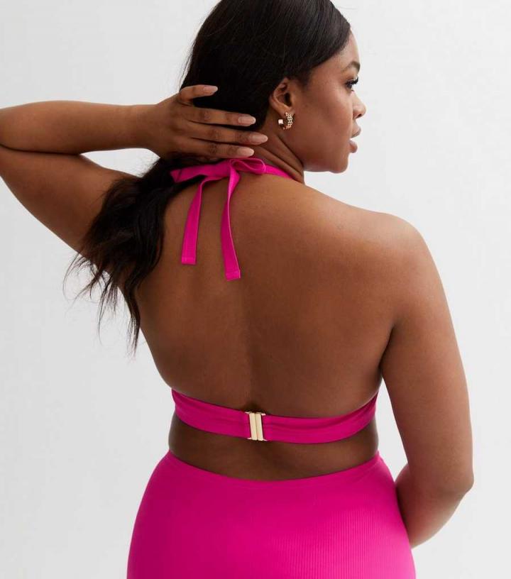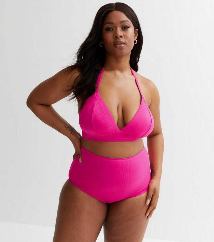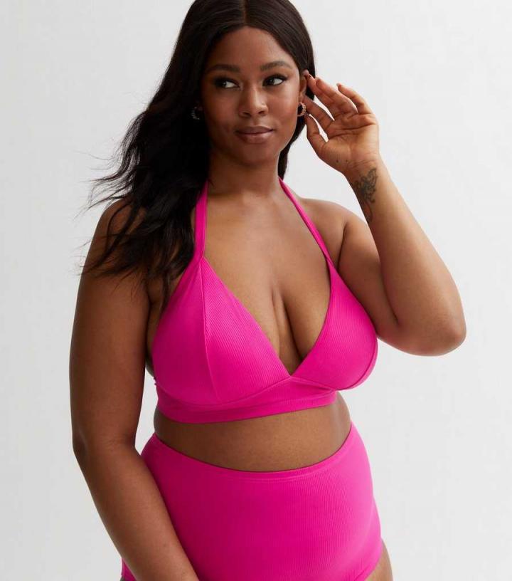 Swimwear & Beachwear | New Look Womens Curves Pink Ribbed Long Triangle Bikini Top