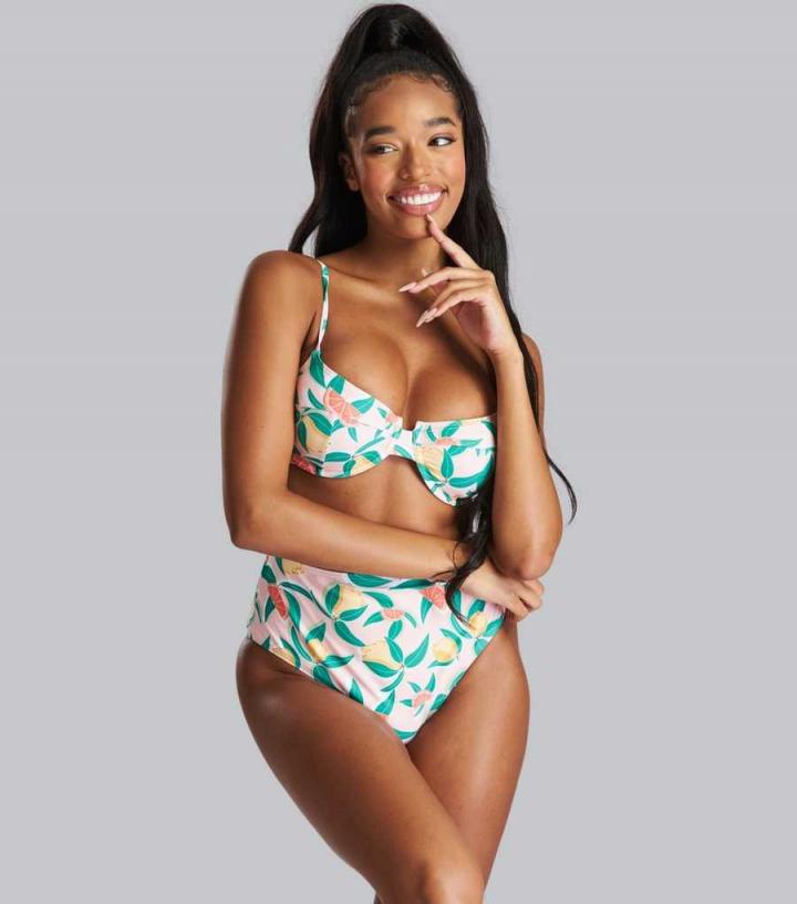 South Beach. Decorated with a fruity print, this pink bikini was made for sunny days. With underwired support and high waist bottoms, it’s shore to become a suitcase staple.