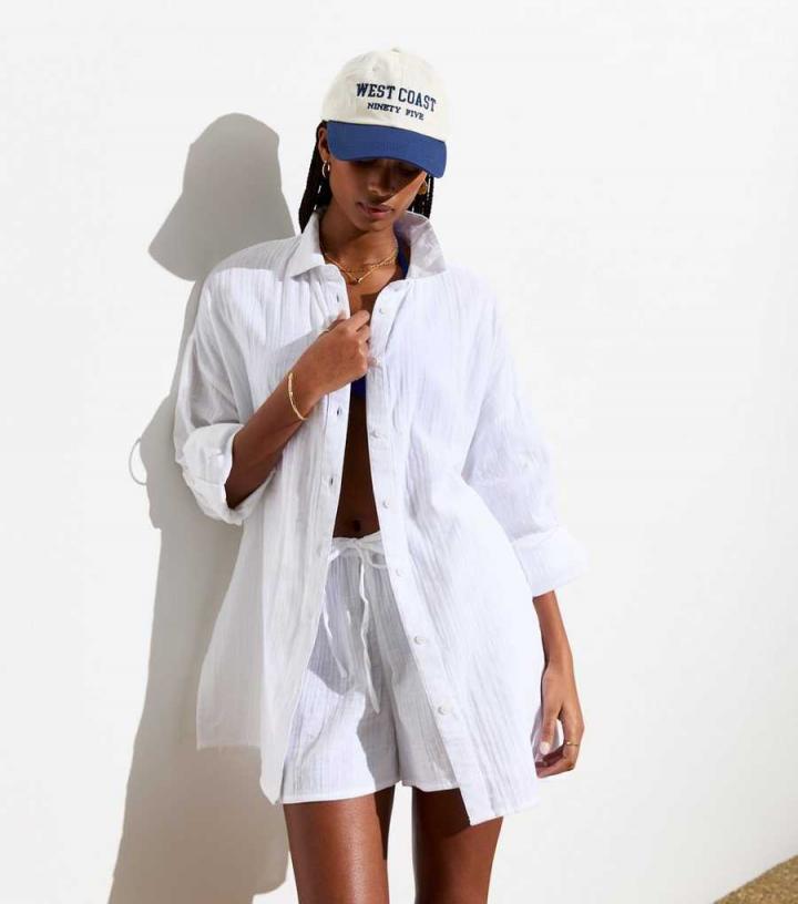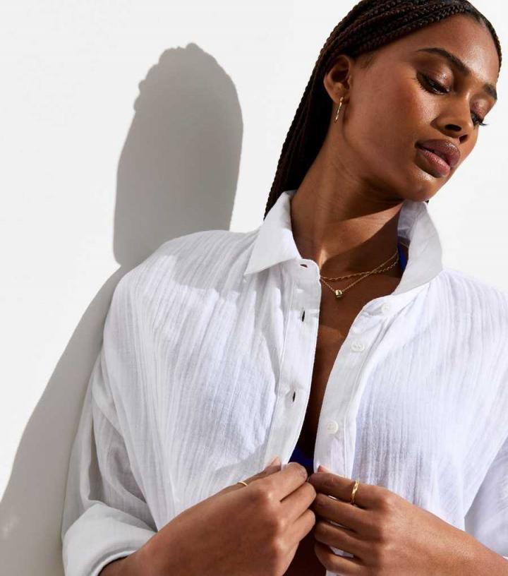 Swimwear & Beachwear | New Look Womens White Long Lightweight Cotton Shirt