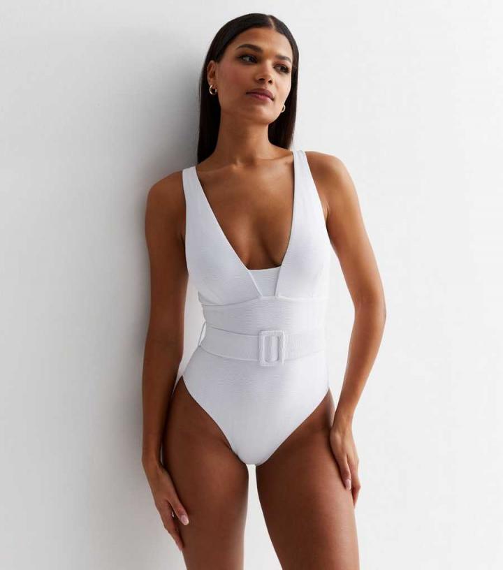 Swimwear & Beachwear | New Look Womens White Textured Belted Swimsuit