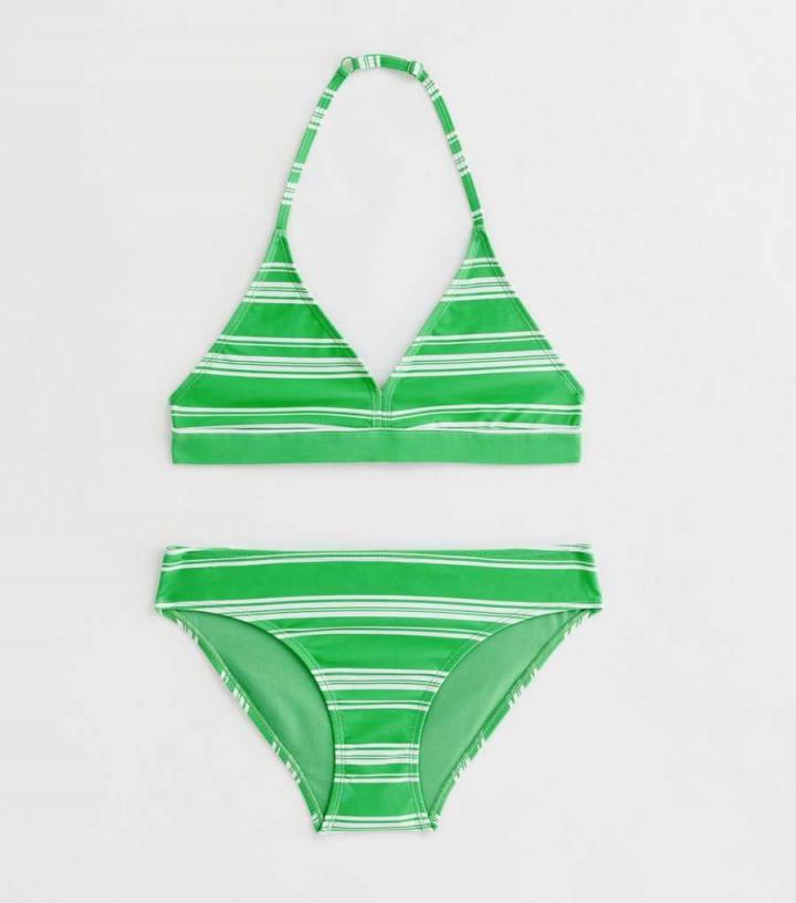 GirlsGreen Stripe Triangle Bikini Set New Look…