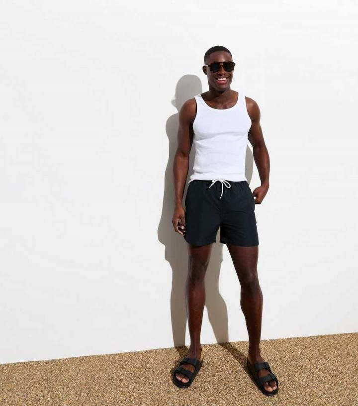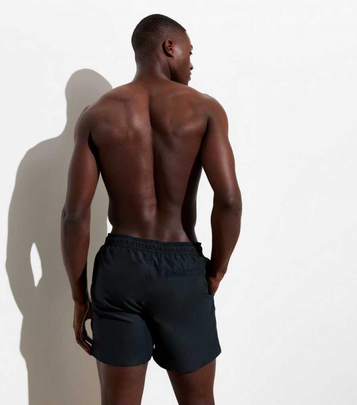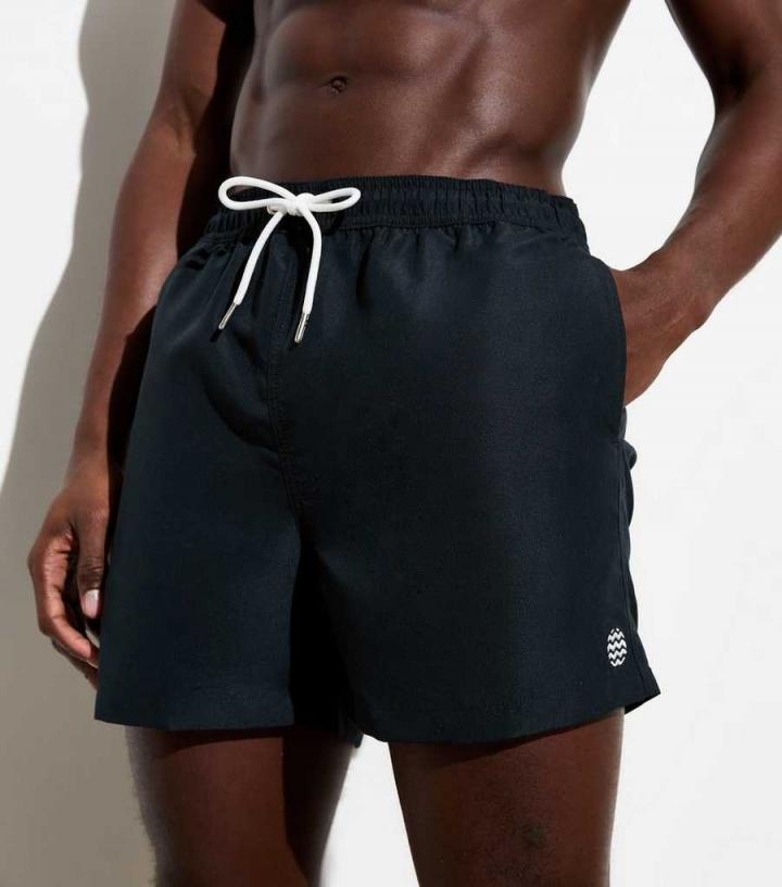 Mens Navy Mid Length Drawstring Swim Shorts New Look…