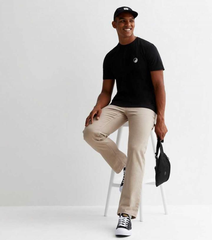T-Shirt & Polos | New Look Mens Black Cotton Embroidered Yin Yang Logo T-Shirt