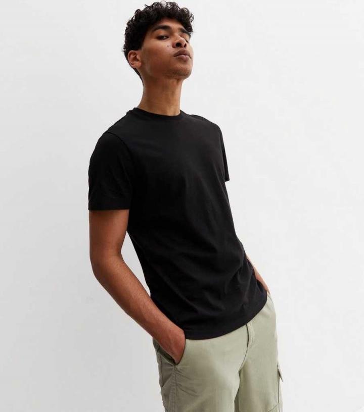 Mens Black Short Sleeve Crew Neck T-Shirt New Look…