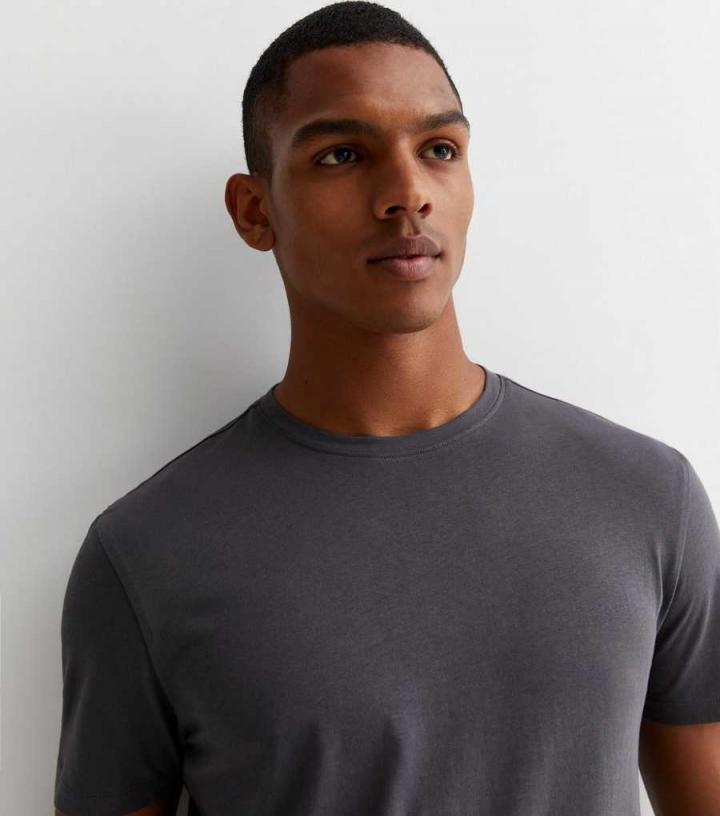 T-Shirt & Polos | New Look Mens Dark Grey Cotton Crew Neck Regular Fit T-Shirt