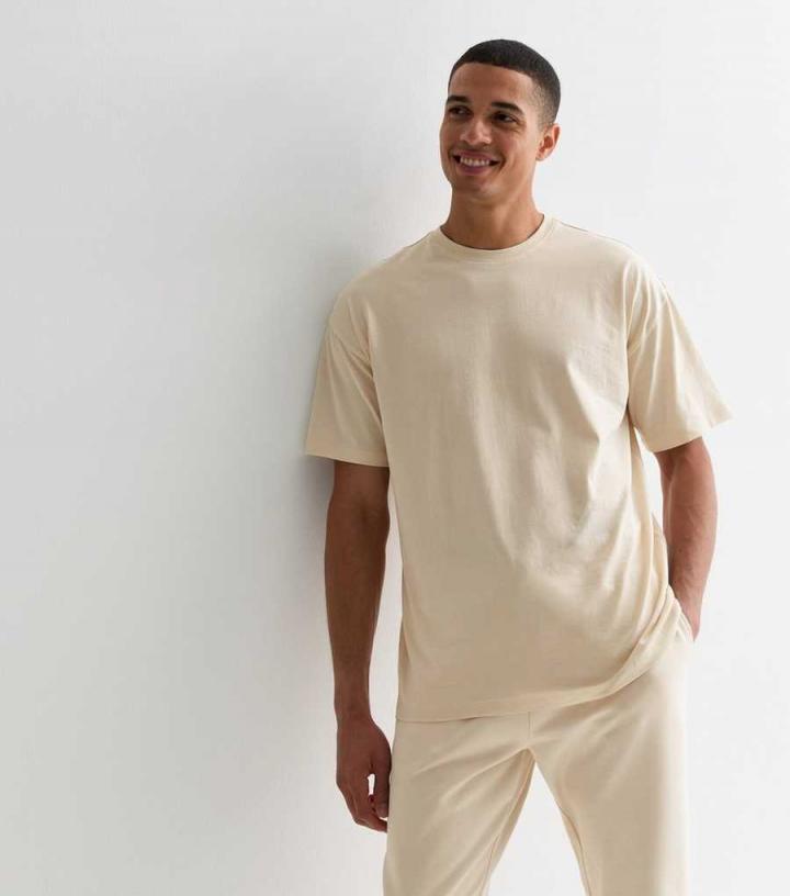 Mens Off White Cotton Crew Neck Oversized T-Shirt New Look