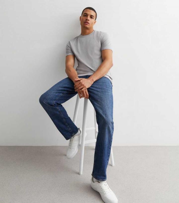 Mens Pale Grey Cotton Crew Neck Regular Fit T-Shirt New Look…