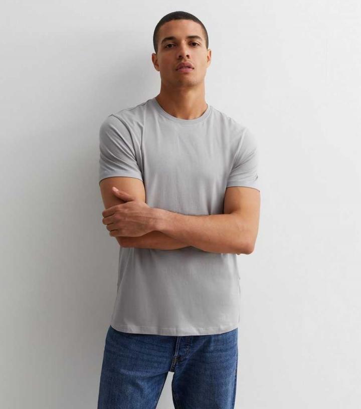 Mens Pale Grey Cotton Crew Neck Regular Fit T-Shirt New Look