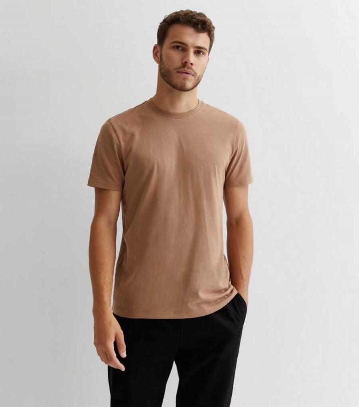 T-Shirt & Polos | New Look Mens Tan Cotton Crew Neck Regular Fit T-Shirt