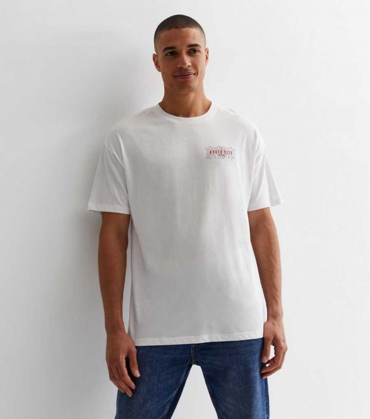 T-Shirt & Polos | New Look Mens White Cotton Kyoto City Front and Back Logo Oversized T-Shirt