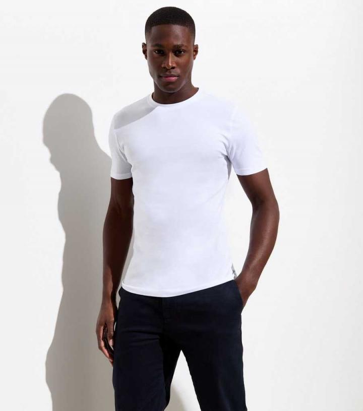 Mens White Cotton Muscle Fit T-Shirt New Look…
