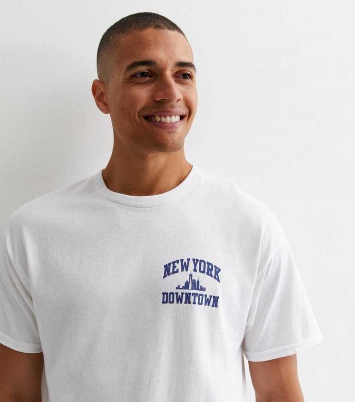 Mens White Cotton NY Downtown Front and Back Logo T-Shirt New Look