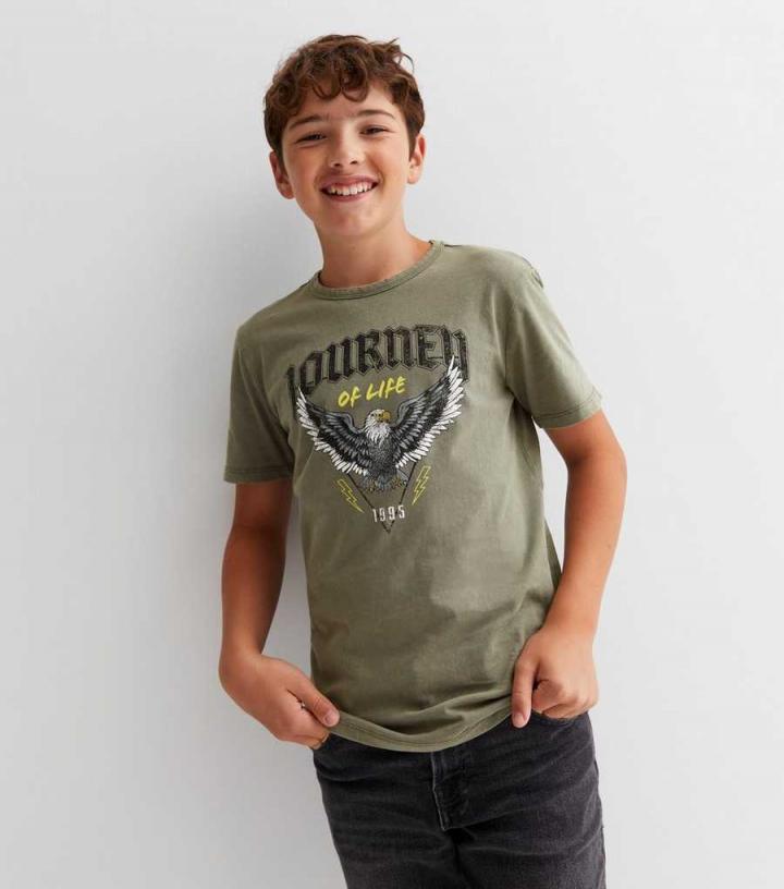 Boys KIDS ONLY Khaki Eagle Print T-Shirt New Look…