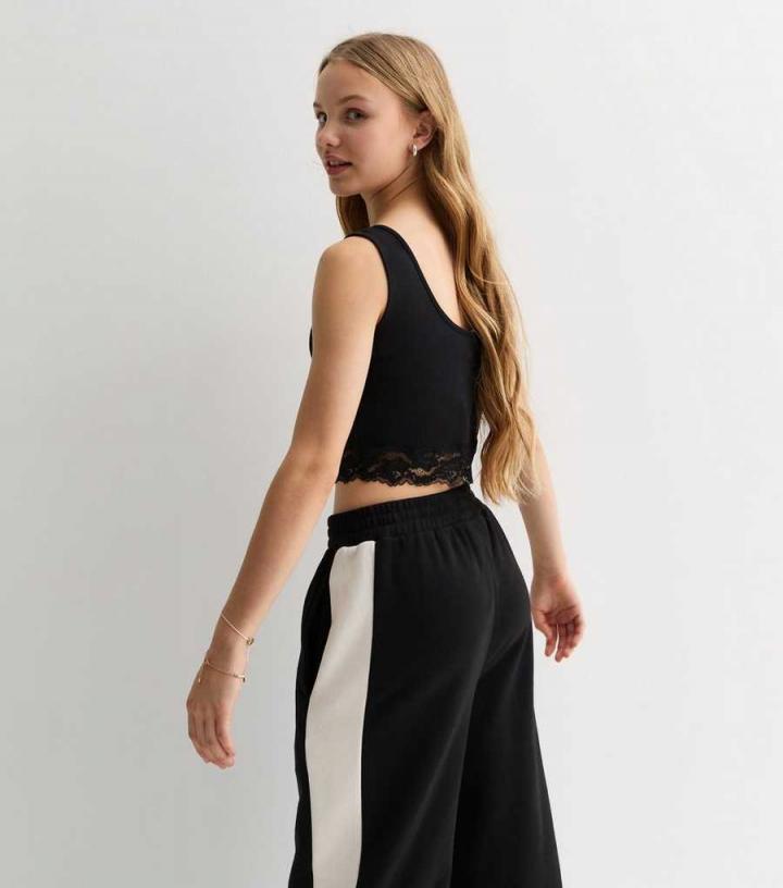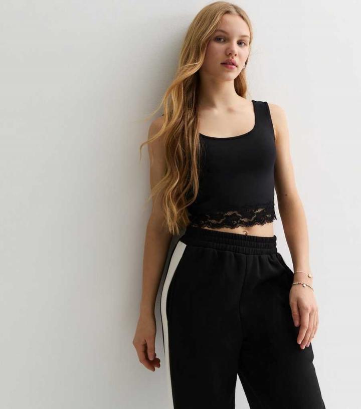 – Black- Scoop neckline- Thick straps- Lace hem- Cropped length- Soft cotton blend- Regular fit- Model is 5’1"/156cm and wears age 12-13/height 152-158cm
