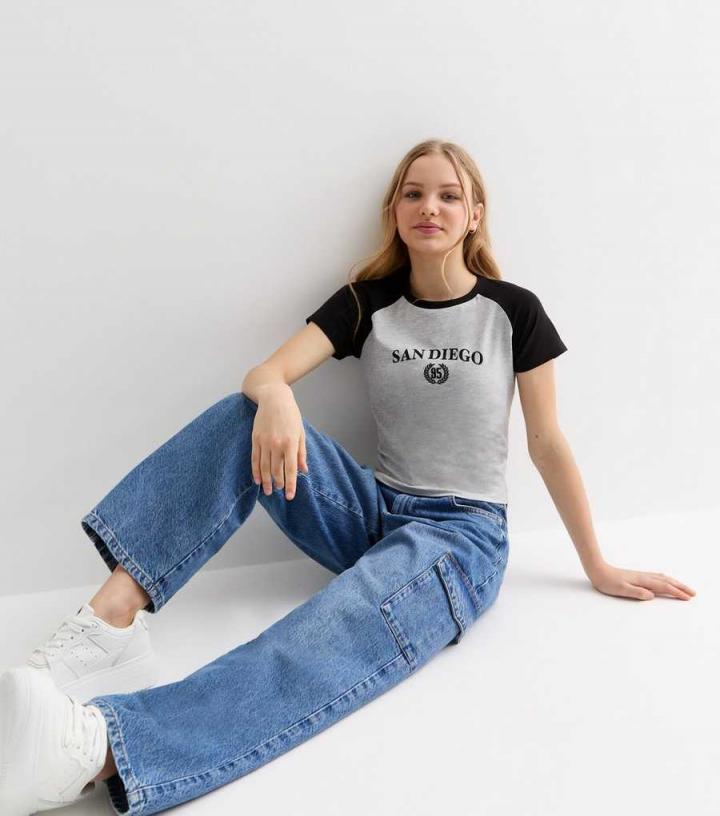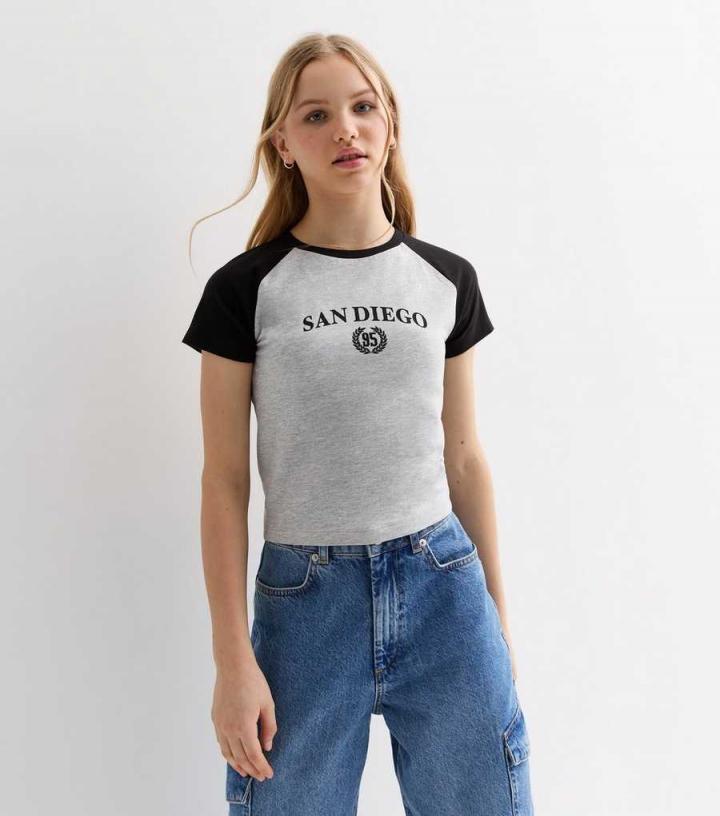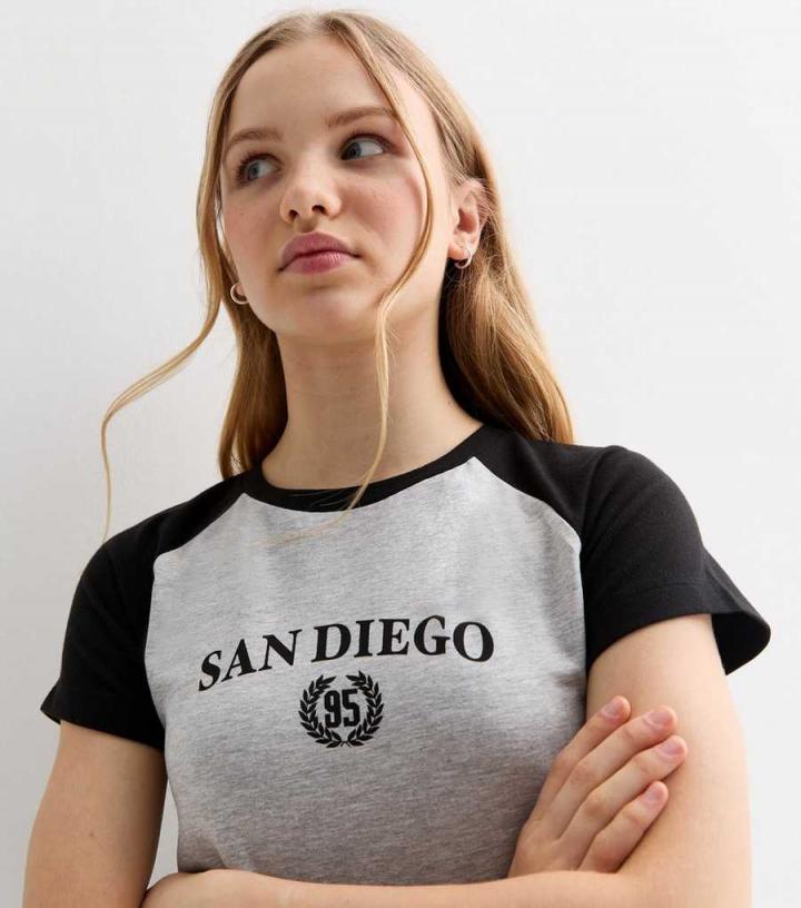 Tops | New Look Girls Black San Diego Logo Raglan T-Shirt