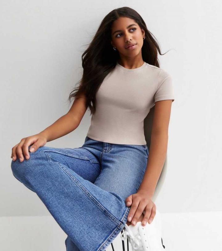Tops | New Look Girls Light Brown Ribbed Crew Neck T-Shirt