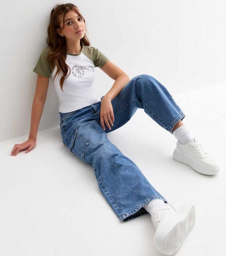 Tops | New Look Girls Olive NY Logo Raglan T-Shirt