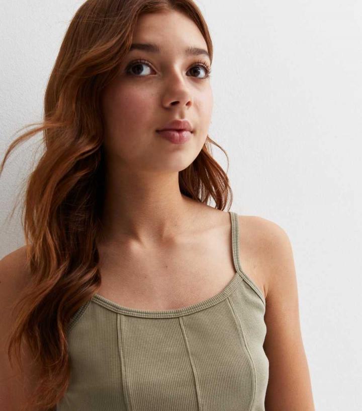 Tops | New Look Girls Olive Ribbed Strappy Corset Top