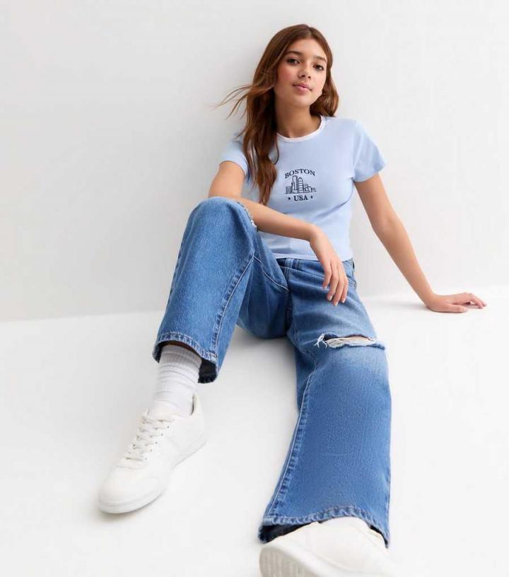 – Pale blue- ‘Boston USA’ embroidered logo- Crew ringer neckline- Short sleeves- Cotton blend- Regular fit- Model is 5’1"/156cm and wears age 12-13/height 152-158cm
