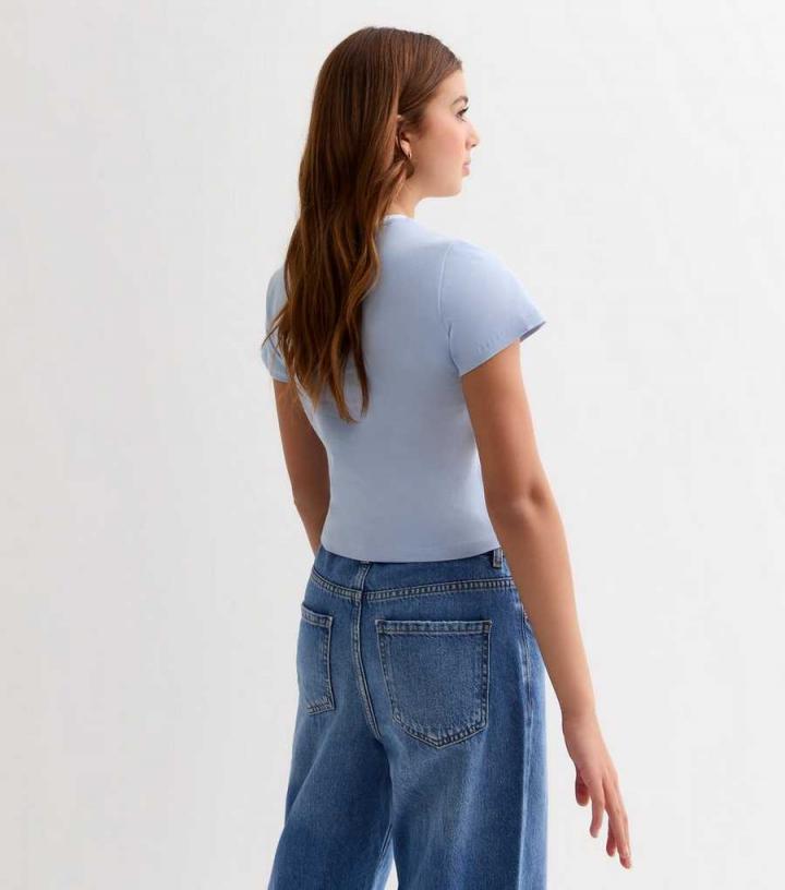 Girls. An embroidered logo and ringer neckline make give this pale blue T-shirt a cool finishing touch.
