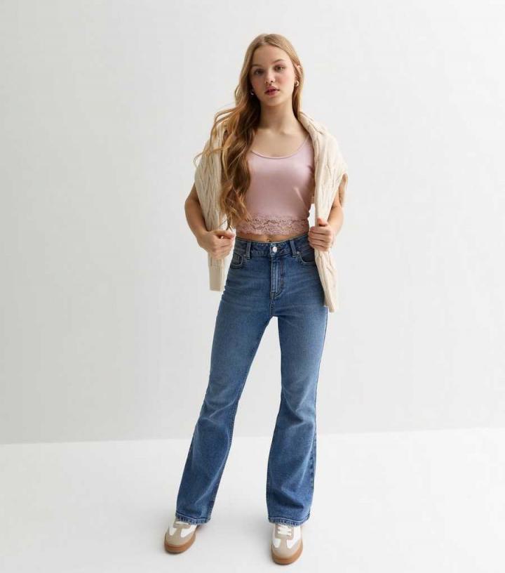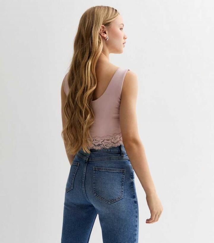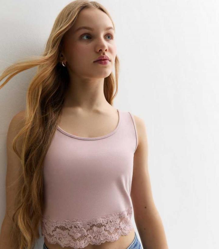 – Pale pink- Scoop neckline- Thick straps- Lace hem- Cropped length- Soft cotton blend- Regular fit- Model is 5’2"/157cm and wears age 12-13/height 152-158cm