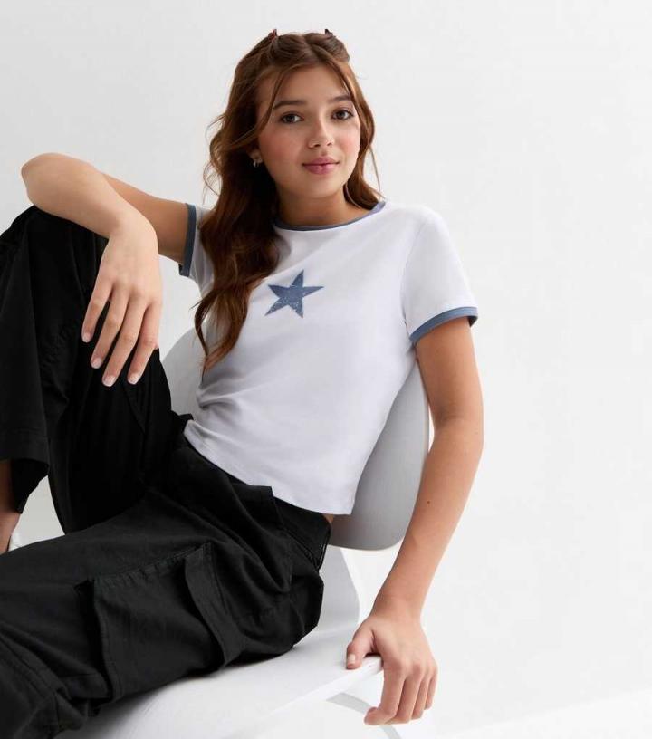 Tops | New Look Girls White Star Logo Ringer T-Shirt
