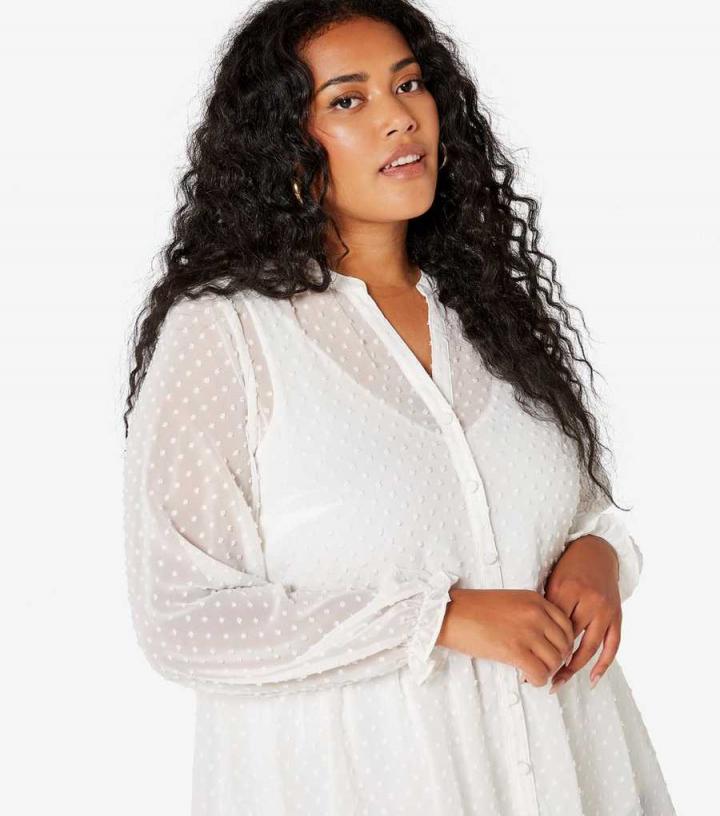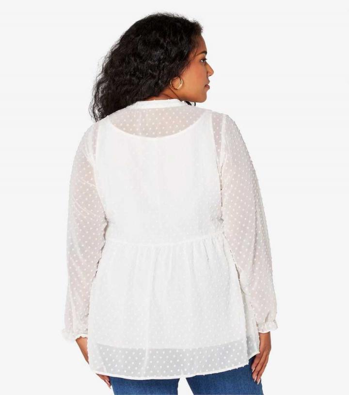 Apricot Curves. Its dobby fabric and tiered hem make this white blouse a pretty pick for work or the weekends. Try yours with trousers and loafers, or jeans and block heels.